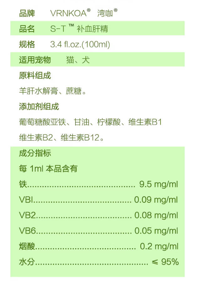 美国湾咖补血肝精猫咪产后营养品幼猫贫血绝育术后补铁补血 50ML